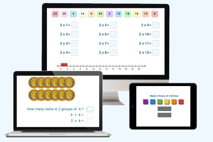 The program works at the pupil's speed. It is multi-sensory and uses spaced repetition. Pupils practice their tables in order and out of order in many different ways